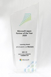 エディフィストラーニングは、2020年8月26日、日本マイクロソフト社が主催する「マイクロソフト ジャパン パートナー オブ ザ イヤー 2020」において、「Learning アワード」を受賞しました。